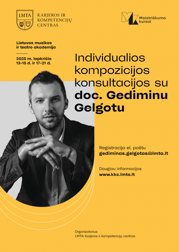 Jau ne pirmus metus organizuojamos individualios kompozicijos konsultacijos su LMTA Kompozicijos katedros docentu Gediminu Gelgotu.