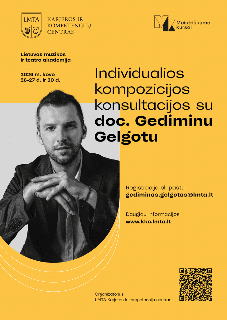 Jau ne pirmus metus organizuojamos individualios kompozicijos konsultacijos su LMTA Kompozicijos katedros docentu Gediminu Gelgotu.